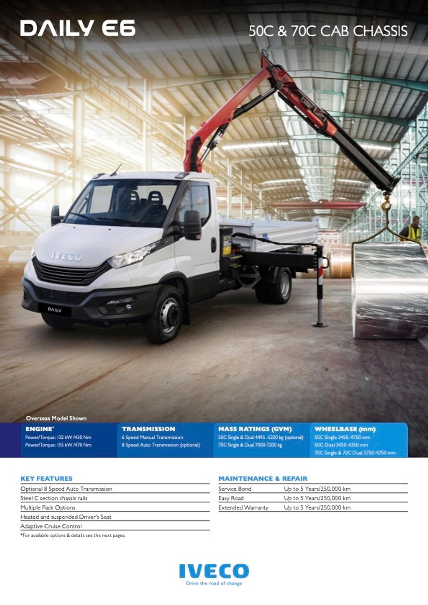 Combining the latest in Euro 6 (E6) engines, that produce fewer emissions while offering more power than their predecessors, an expanded array of intelligent active safety equipment and a suite of advanced driver appointments, Daily E6 is more refined and carlike to drive than ever. But when it’s time to get the demanding jobs done, owners can also rest assured knowing that Daily E6 continues to offer market-leading GVM and cargo space volumes*, along with a tough, full C-Section chassis and options including PTO, rear airbag suspension and rear differential lock – reminders of IVECO’s position as a leading commercial vehicle specialist.